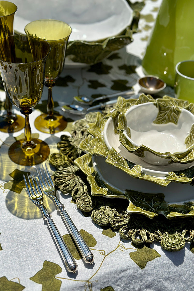 Timeless and trailing, our new Ivy Table Linen Collection is designed for those who appreciate the beauty of simplicity and the enduring charm of evergreen nature. Designed to match effortlessly with our Herbarium Collection of napkins and placemats.