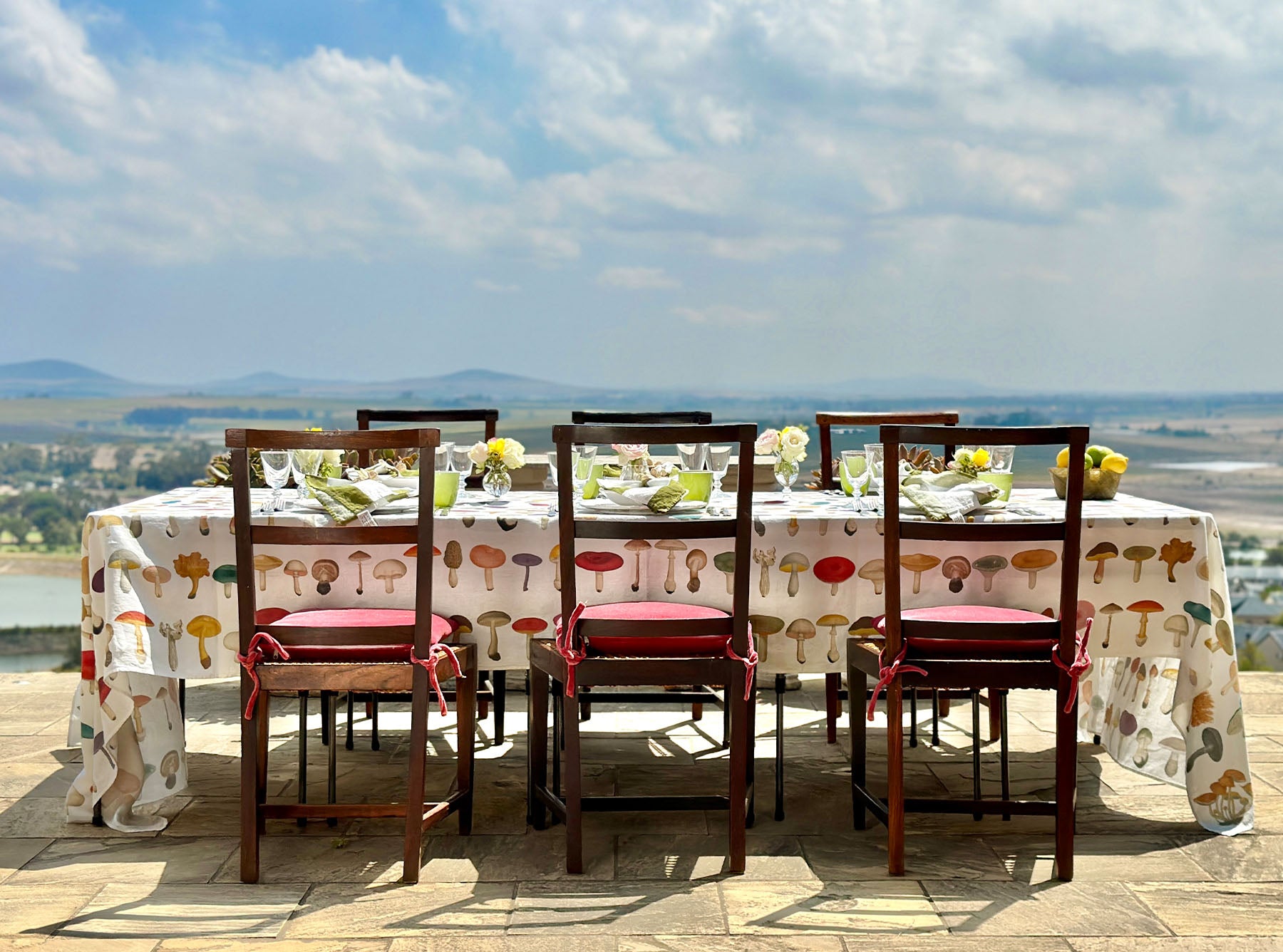 S&B x John Derian White 'Fungi' Linen Tablecloth